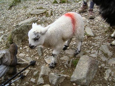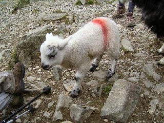 We almost missed Nethermost Pike (891m) because we could see Helvellyn (950m) about a kilometre ahead. Both lie along the ridge from Dollywaggon Pike. The path widens and the climbs became sedate compared with those we had already made. Being fleeced by a Lamb in the shelter at the summit of Helvellyn provided a welcome distraction. It's mother was teaching it how to share in the tourist bounty. Walking along the ridge granted our tender feet and aching muscles some welcome respite. Our 24 hour deadline was 6.25 pm. We still had six peaks to bag and only about three and a half hours to do it. It seemed just possible as we headed away from Helvellyn towards Lower Man (925m).