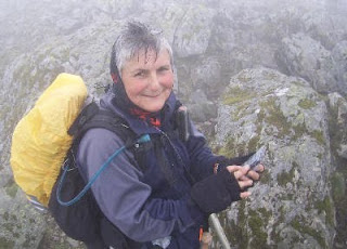Despite being over 2400 ft by a wide margin and directly on our path to the next peak, Great End (910m), Broad Crag isn't on our list and doesn't count towards the 24 peaks. The terrain between Broad Crag and Great End is a boulder field and there are no distinct paths. In the end, Jacqui had to lead us to it using her satellite navigation gadget. With visibility so low and our energy levels waning, we made several further navigation errors along the way to Esk Pike (885m) and Bow Fell (902m), our last peak for the day.