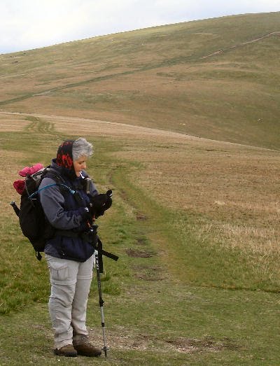 The fourteen peaks for the second day are Red Screes, Dove Crag, Hart Crag, Fairfield, Seat Sandal, Dollywagon Pike, Nethermost Pike, Helvellyn, Lower Man, White Side, Raise, Stybarrow Dodd, Watson Dodd, and Great Dodd. The Sun was well up on Sunday May 30th when Jacqui and I arrived at Kirkstone Pass to begin our ascent of the remaining peaks. Since the kitchen at the hostel didn't open until 7.15 and all of our food for the hike was in the fridge in the kitchen, we were forced to have a lie in and start later than intended. Eventually, we begin our climb of Red Screes (776m) at 8.25 am. It was very steep all the way up however, we had a big advantage. The start at Kirkstone Pass is already at 457m. The broken clouds were well above the peaks so we could see where we were going. This made navigation much easier. As if to counter this advantage, a chilling north west wind gusted to 45 knots throughout the day.
